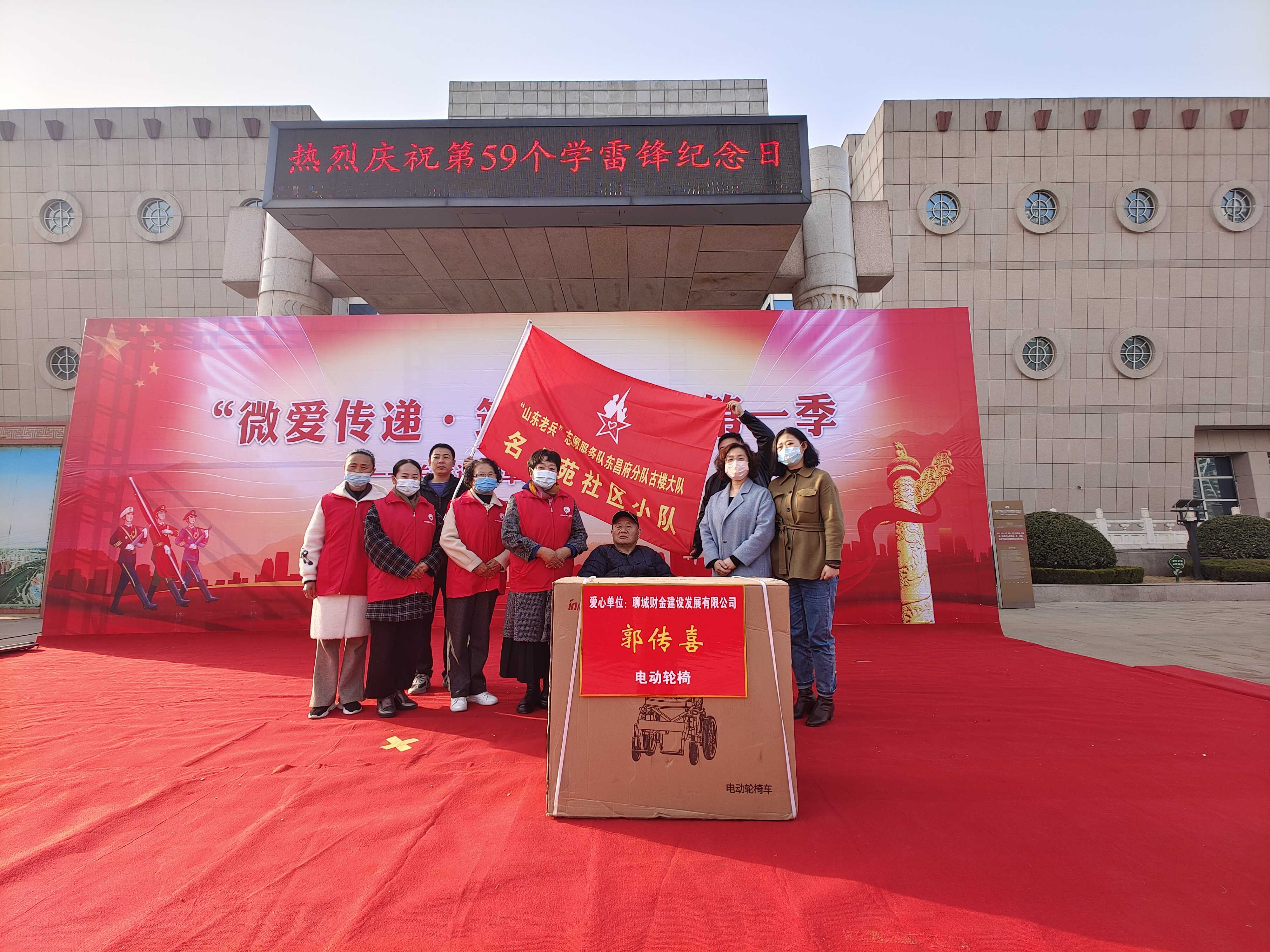一份愛心,勝過千言萬語;一點捐贈,弘揚人間大愛。3月8日,市財金公司干部職工積極參加由東昌府區(qū)退役軍人事務(wù)局、古樓街道辦事處聯(lián)合主辦的第一季“微愛傳遞·筑夢飛翔”——關(guān)愛退役軍人公益活動,并捐贈電動輪椅一輛。
