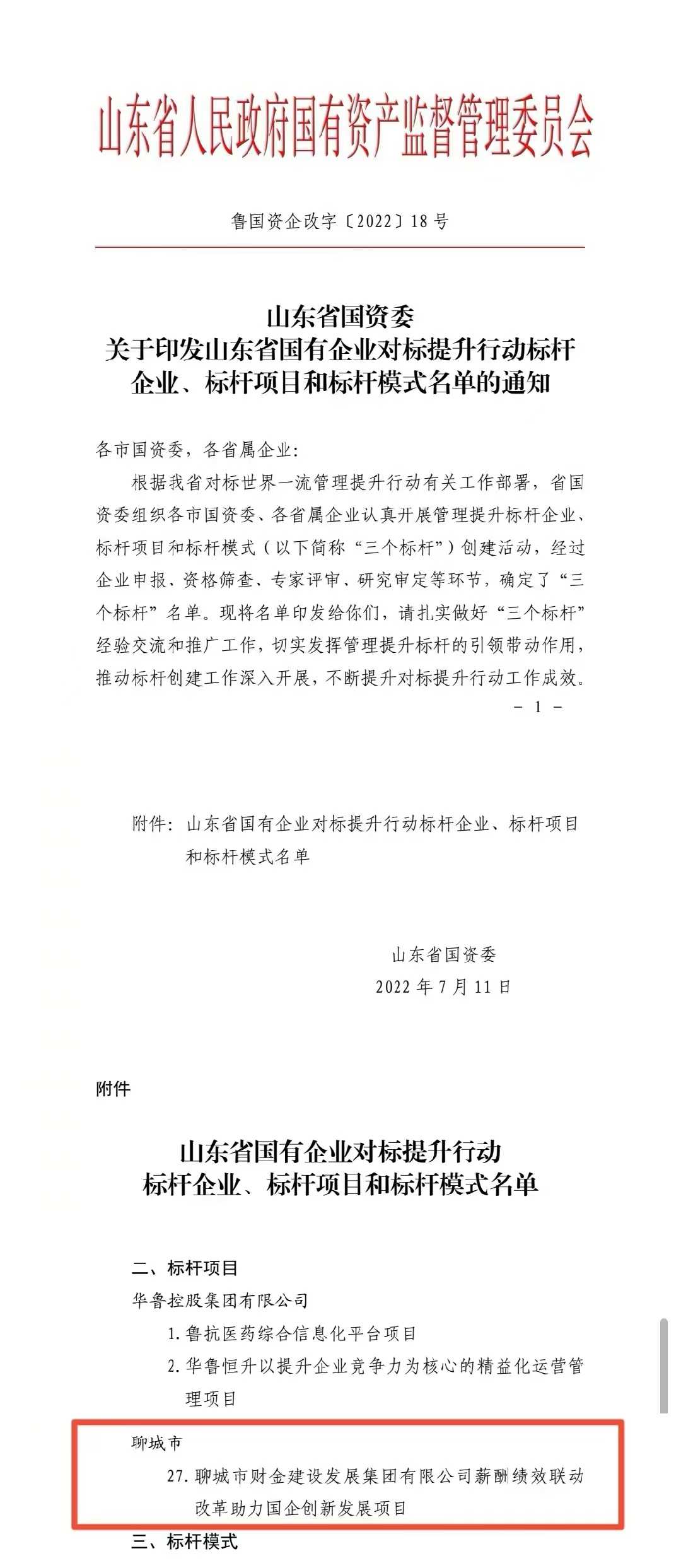 7月26日,記者從市國資委了解到,省國資委于近日公布了山東省國有企業(yè)對(duì)標(biāo)提升行動(dòng)標(biāo)桿企業(yè)、標(biāo)桿項(xiàng)目和標(biāo)桿模式名單,“聊城市財(cái)金建設(shè)發(fā)展集團(tuán)有限公司薪酬績(jī)效聯(lián)動(dòng)改革助力國企創(chuàng)新發(fā)展項(xiàng)目”成功入選標(biāo)桿項(xiàng)目名單。
